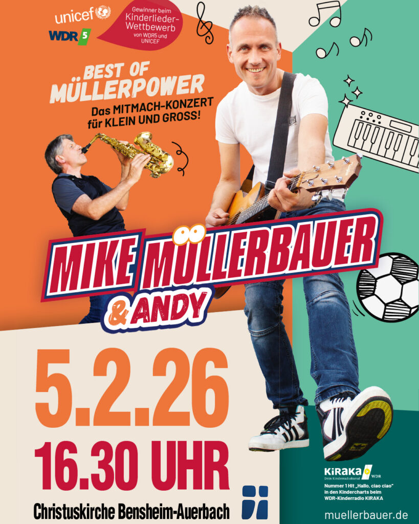 Am 05.02.26 findet um 16:30 Uhr bei uns in der Christuskirche das Best of Müllerpower MITMACH-KONZERT für Klein und Groß statt.