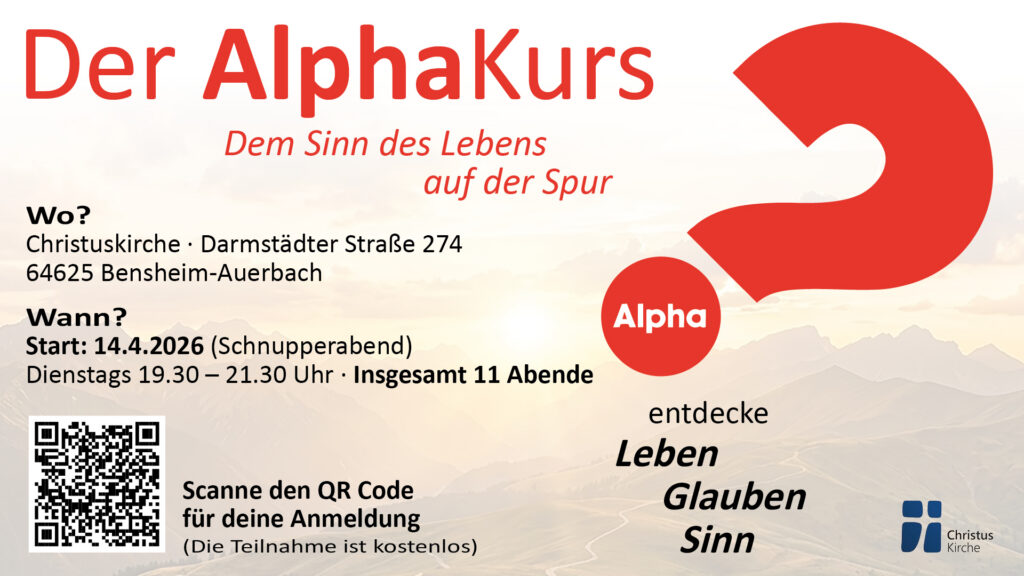 Der Alpha-Kurs beschäftigt sich mit den grundlegenden Themen des Glaubens, was die Bibel dazu sagt und wie man das praktisch (er)leben kann.